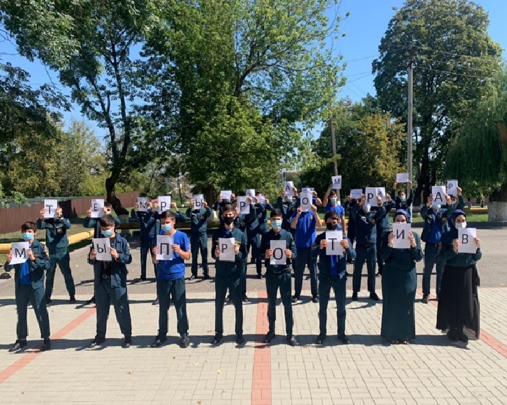 На площадке перед техникумом состоялся флэш-моб «Мы против террора». В нем приняли участие обучающиеся группы № 10 «ПБ».