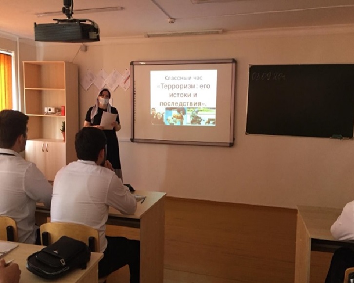 В группе № 2 прошел классный час на тему: «Что такое терроризм, его истоки и последствия», в группе № 3 «Пожарная безопасность» прошел классный час на тему «Противодействие терроризму», в группе № 4 прошел классный час «Духовность, нравственность, патриотизм», в группе № 5 проведен классный час «Профилактика терроризма и экстремизма».