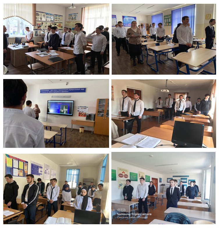 19.04.2021Сегодня, 19 апреля 2021 года в ГБПОУ «Грозненский технологический техникум сервиса им.М.Д.Дадаева» во всех учебных группах первый урок начался с исполнения гимнов Российской Федерации и Чеченской Республики.