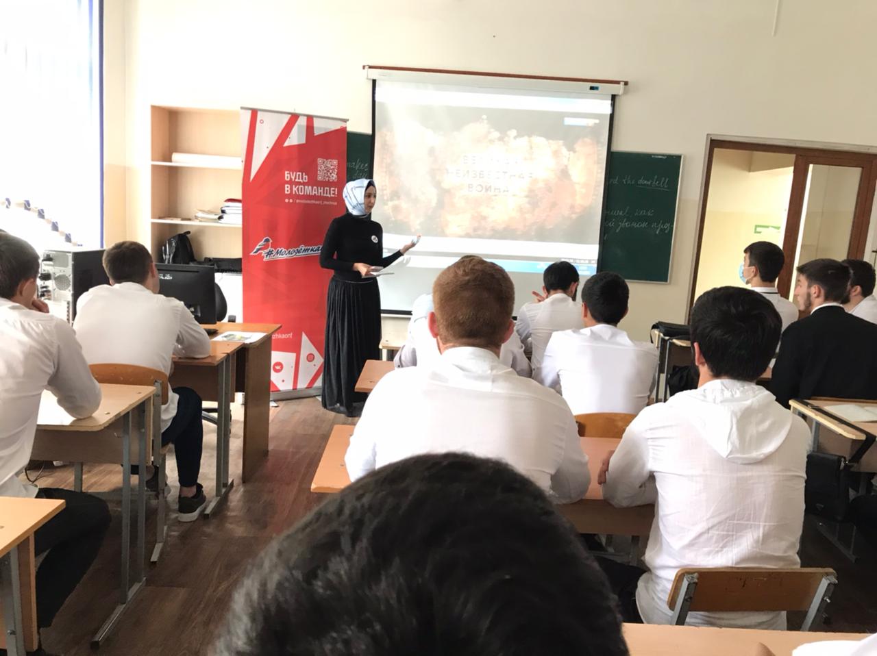 "Каждый год мы издаём книгу о ВОВ, в этом году готовим уже 6-ю и все разные. ВОВ можно изучать много и долго, и всё равно она поражает нас новыми событиями о которых мы узнаем спустя столько лет." - рассказал студентам заместитель генерального директора Мемориального комплекса им. А-А. Кадырова "Аллеи славы", кандидат исторических наук, доцент ЧГУ, член Регионального штаба ОНФ в ЧР, эксперт тематической площадки "Наука" и член Общественной палаты ЧР @opchr_95 - Ислам Хатуев @knyaze_95