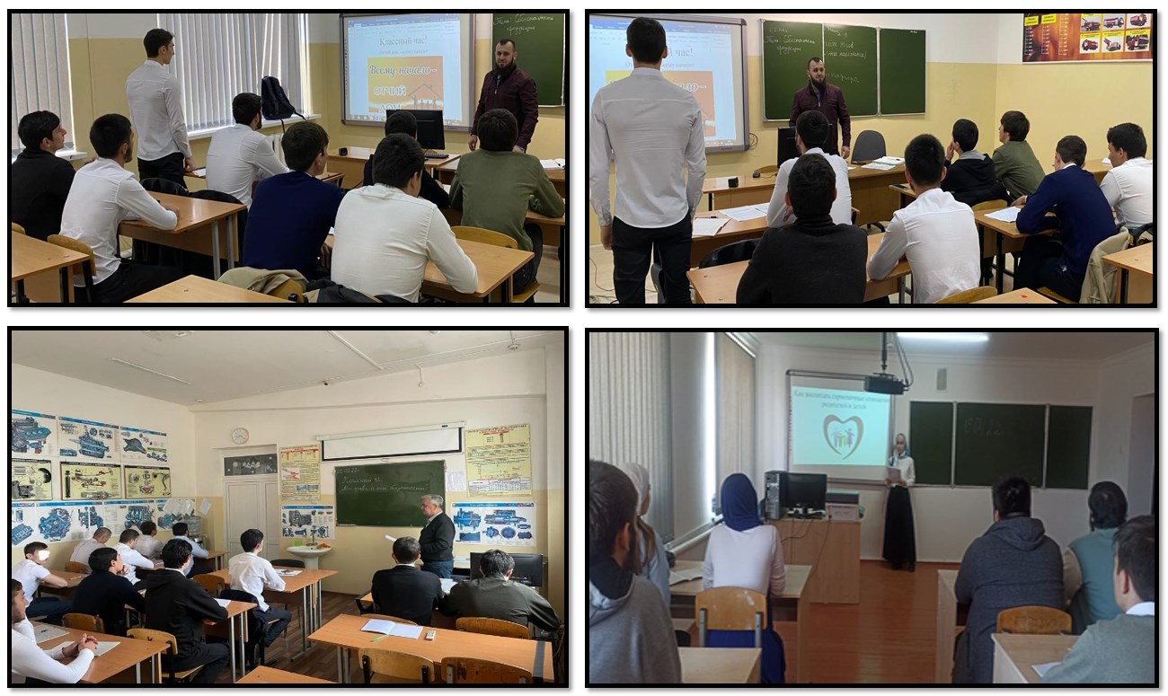1.В группе № 23 УЭиОМД куратором Дидиговым Х. проведен классный час на тему «Отчий дом – всему начало».