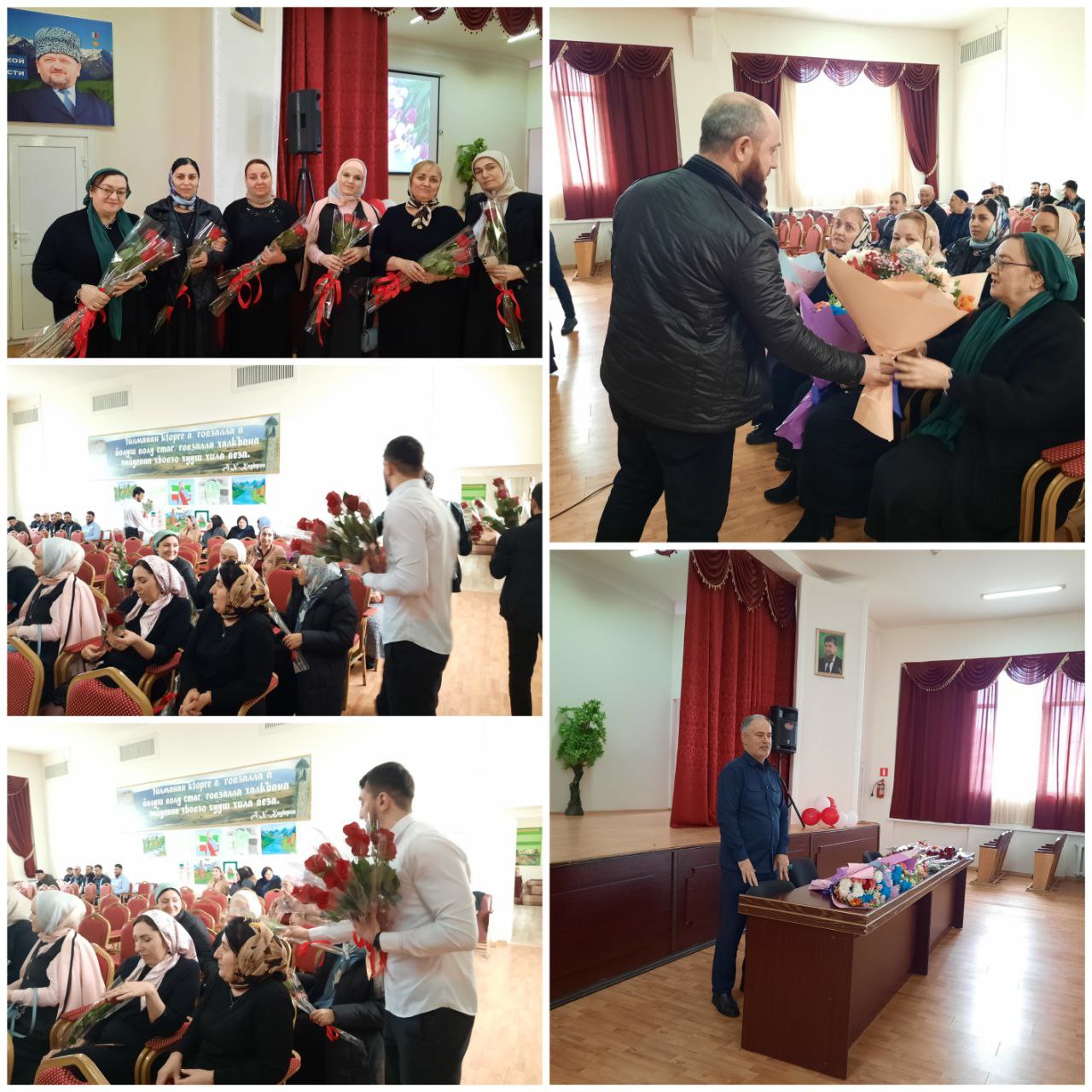 В актовом зале директор колледжа Каримов А.М. поздравил всех женщин с наступающим праздником, пожелал им здоровья, семейного благополучия и успехов в работе. Мужчины вручили всем женщинам цветы и букеты.