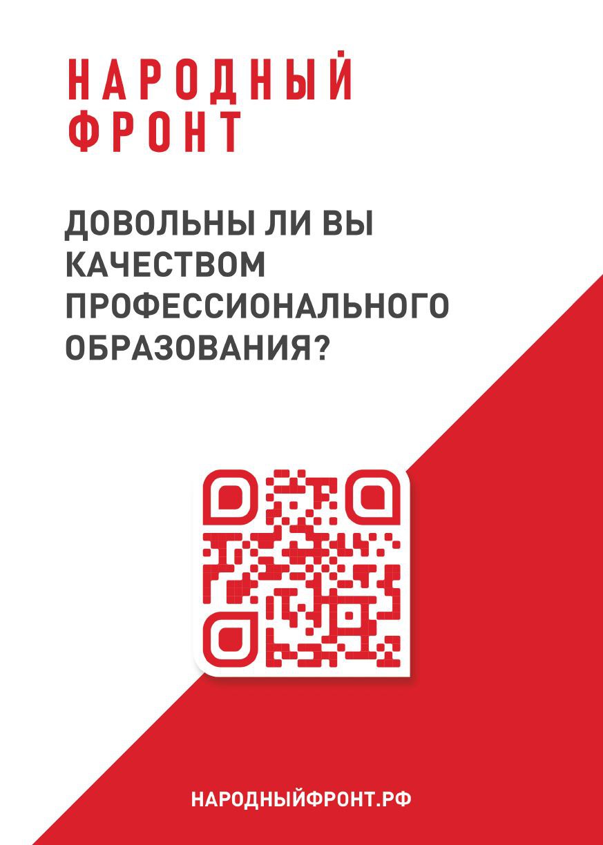 28.04.2023Общероссийское общественное движение «НАРОДНЫЙ ФРОНТ «ЗА РОССИЮ» осуществляет комплексный мониторинг в сфере среднего профессионального образования в формате онлайн-опроса.