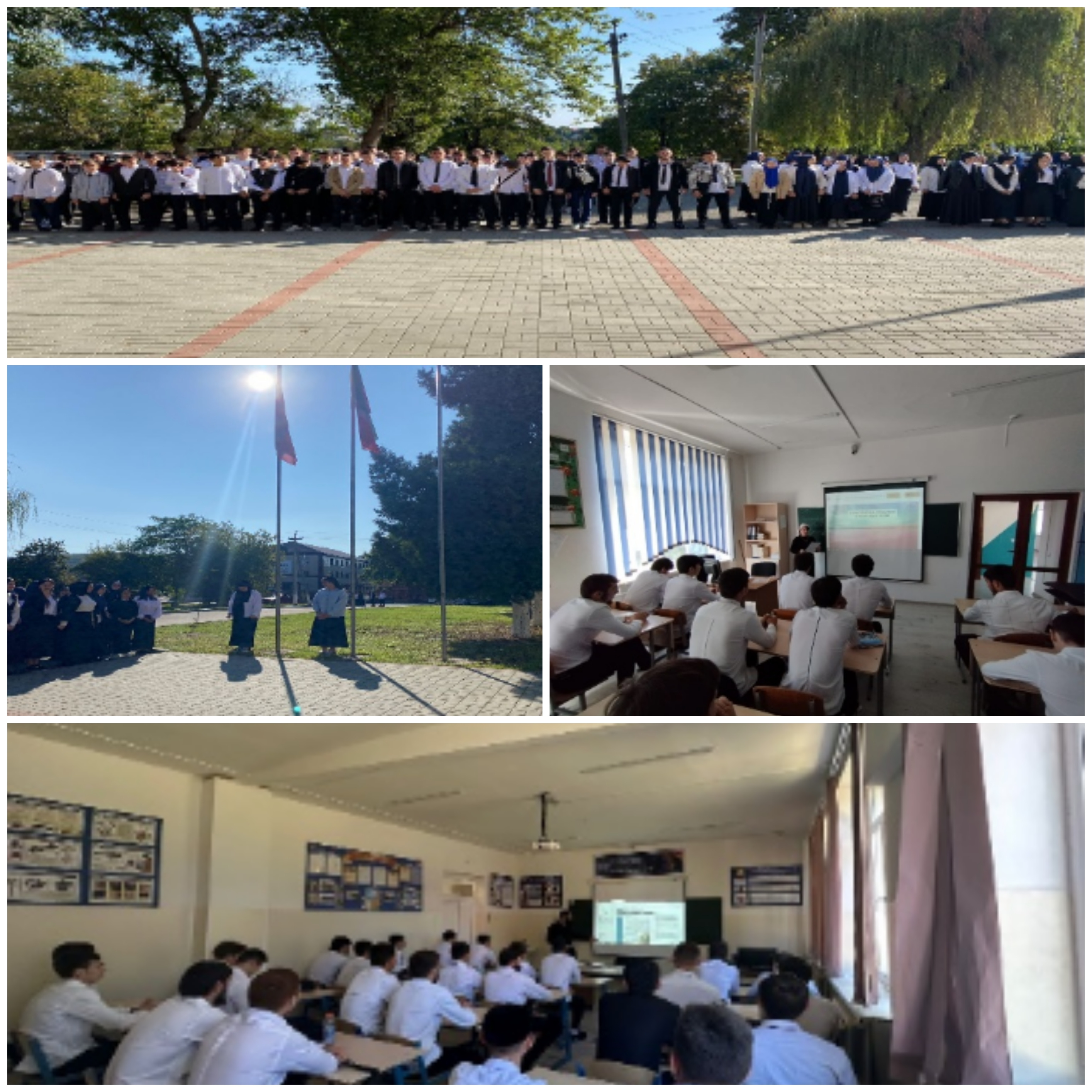 Почетное право поднять флаги РФ и ЧР было предоставлено лучшим студентам колледжа Балуевой Диана и Базаевой Раяне. По окончании торжественной церемонии, первым уроком прошел классный час из цикла «Разговоры о важном». Тема классного часа «Там, где Россия».