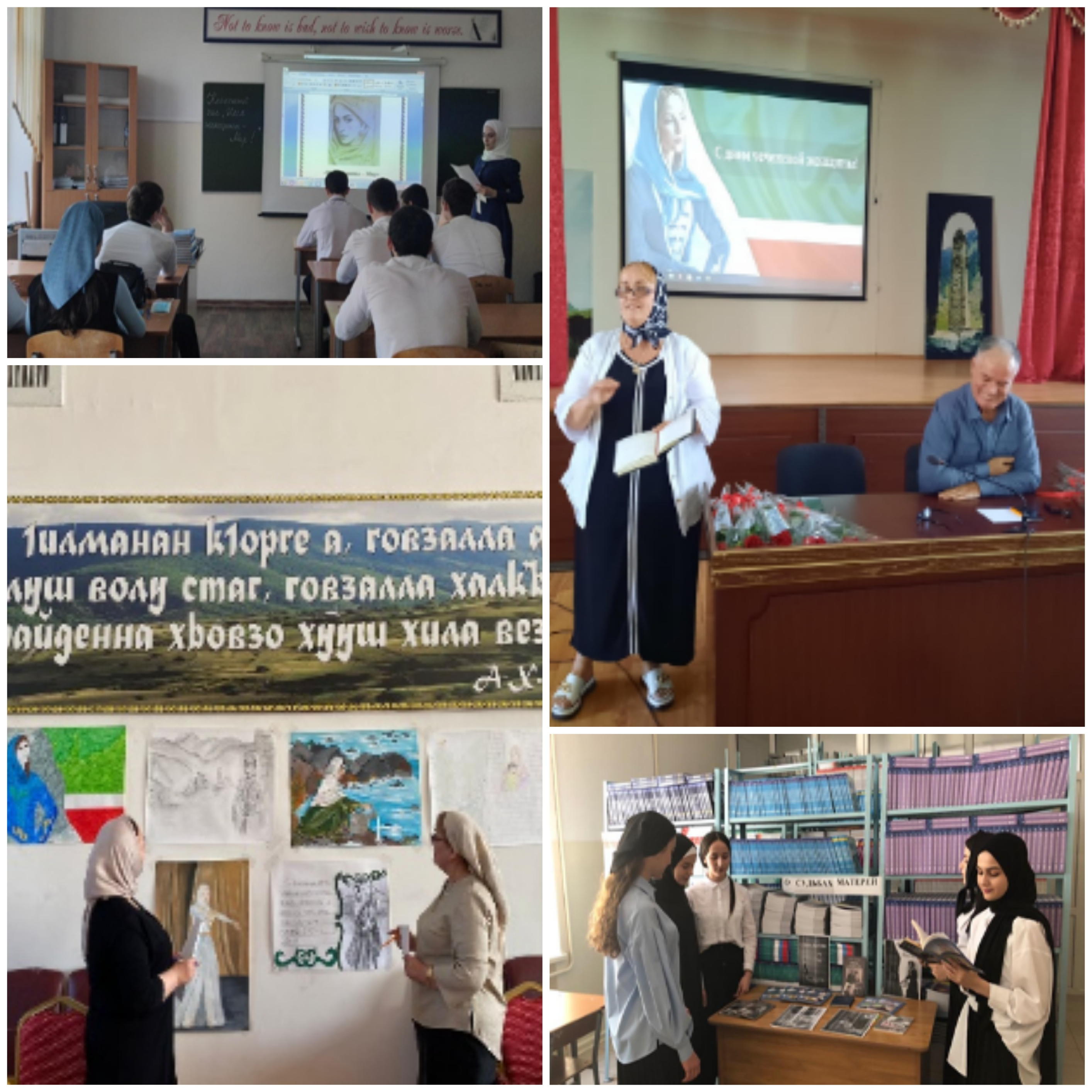 1. Во всех учебных группах кураторы провели классные часы на темы: «Чеченская женщина – гордость нации», «Героические женщины Чечни».