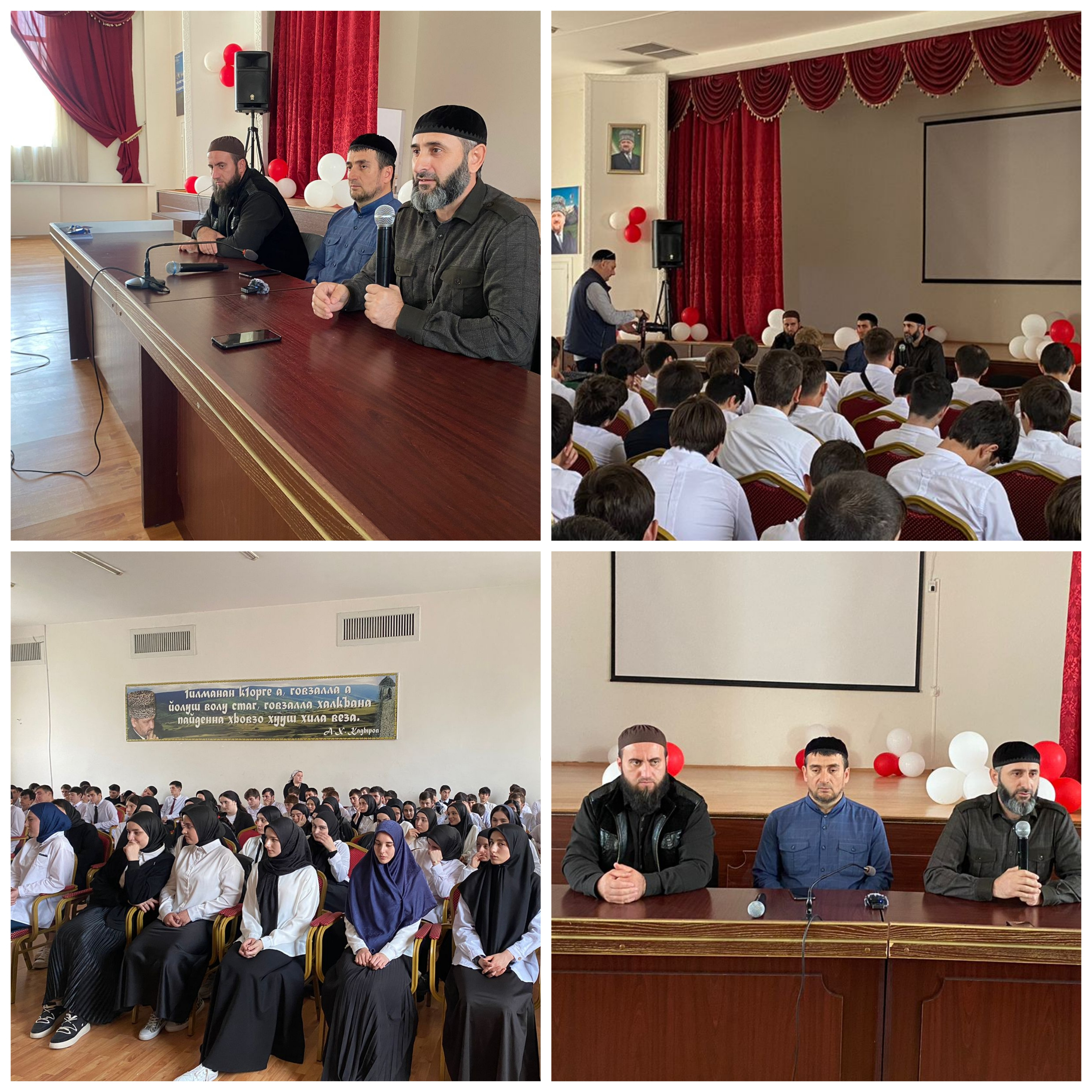 В своей беседе выступающие затронули разные темы духовно-нравственного воспитания подрастающего поколения – говорили о почитании обычаев и традиций чеченского народа, о семейных ценностях, уважении и почитании старших, своих родителей. Также был затронут вопрос профилактики экстремистских проявлений, профилактики наркомании, курения, о вреде употребления энергетических напитков. Особый акцент был сделан на пользовании телефонами, какая угроза может исходить от разнообразных сайтов, подписок. Необходимо быть очень осторожными при общении с незнакомыми людьми.