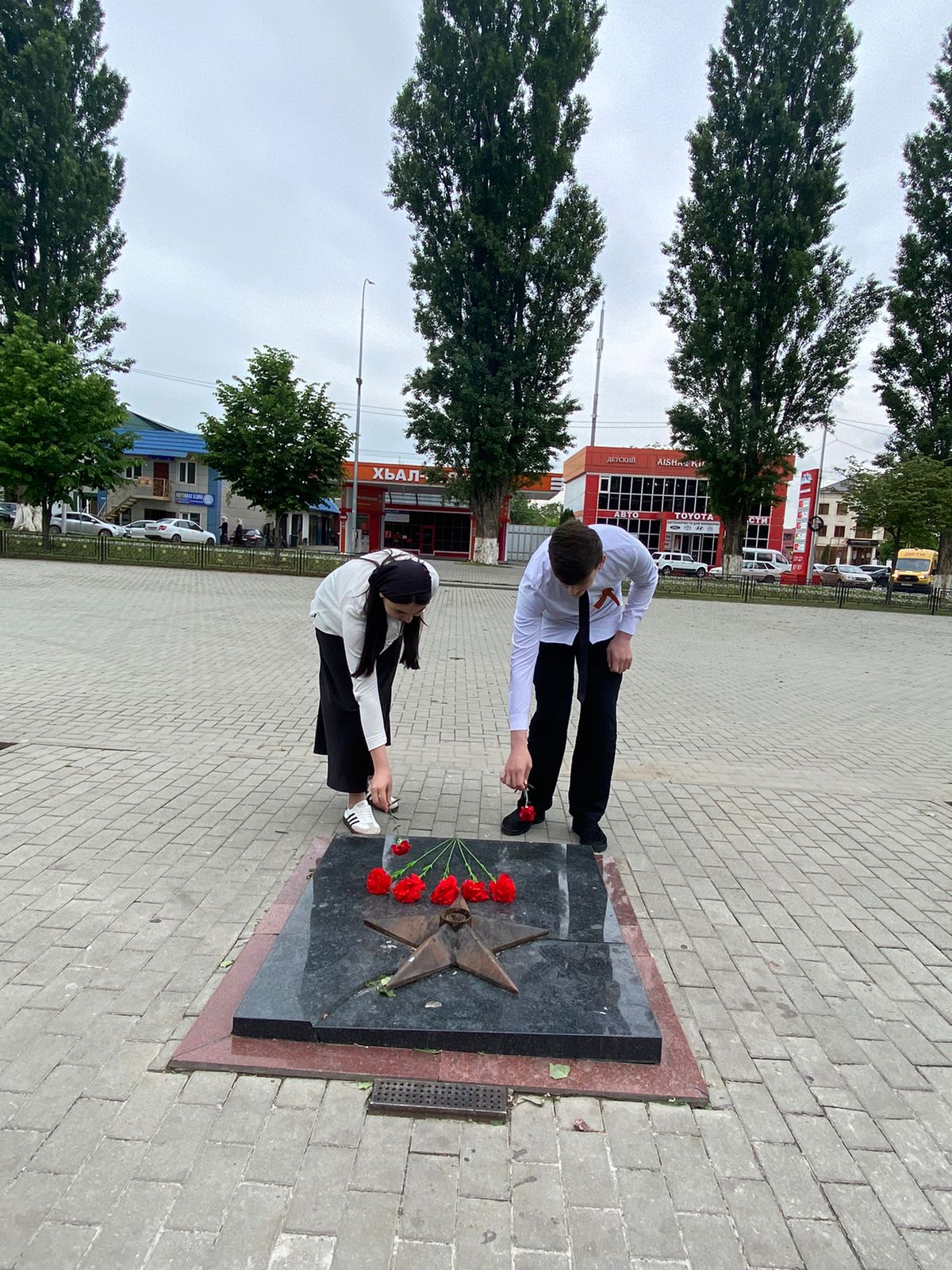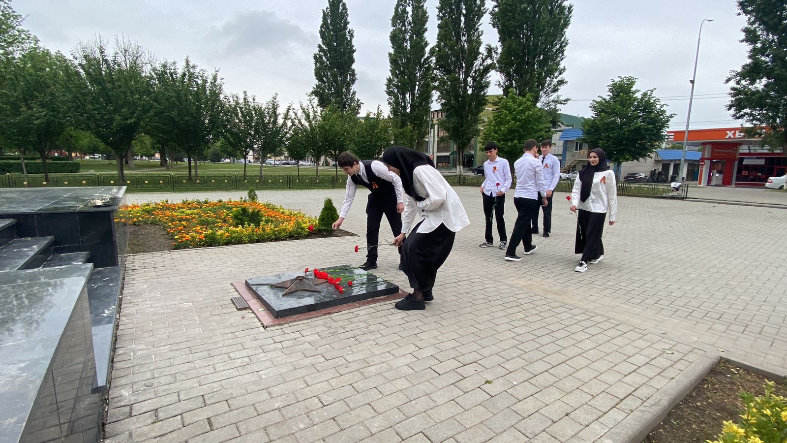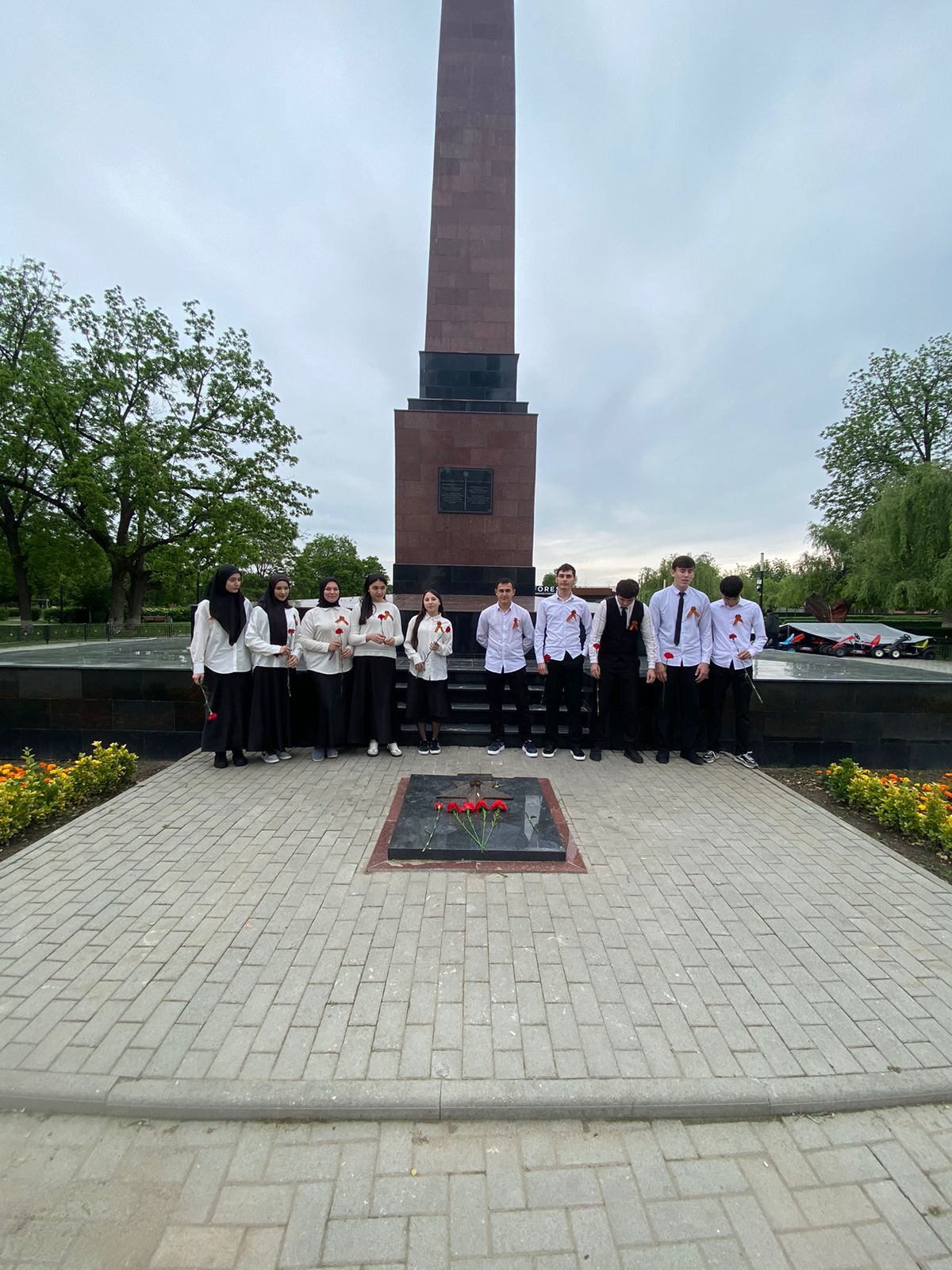 Члены волонтерского отряда возложили цветы к мемориалу героям войны, расположенном в парке им.П.Мусорова в Грозном.
